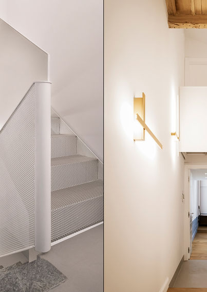 Per valorizzare la spazialità degli ambienti, approfittando dell'altezza abbiamo costruito il vuoto creando un più moderno soggiorno con un soppalco collegandolo alla scala originaria.