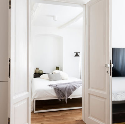 In origine l’appartamento inglobava le sue uniche due finestre rivolte verso lo spazio pubblico, una delle vie centrali del borgo, all’interno di due camere; la zona cottura e il soggiorno risultavano invece privi di luce naturale, in quanto posti nella parte interna dell’unità. Per aumentare la luminosità, è stata ampliata la zona giorno lungo tutta l’estensione dell’appartamento, a scapito di una camera che ne tappava l’affaccio verso l’esterno. Attraverso la disposizione dell’arredo, il living è stato idealmente organizzato in tre aree funzionali (pranzo, cucina e soggiorno) poste in sequenza tra loro.